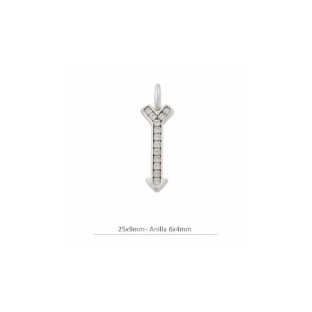 Pendentif flèche avec stras Swarovski. Mesures: 25x9mm, anneau 6x4mm.