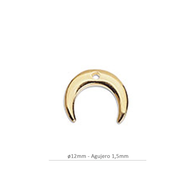 Mini pendentif lune. Zamac avec bain d’or. Le sac contient 2 unités. Il a une taille de 12 mm. et a une perceuse de 1,5 mm.