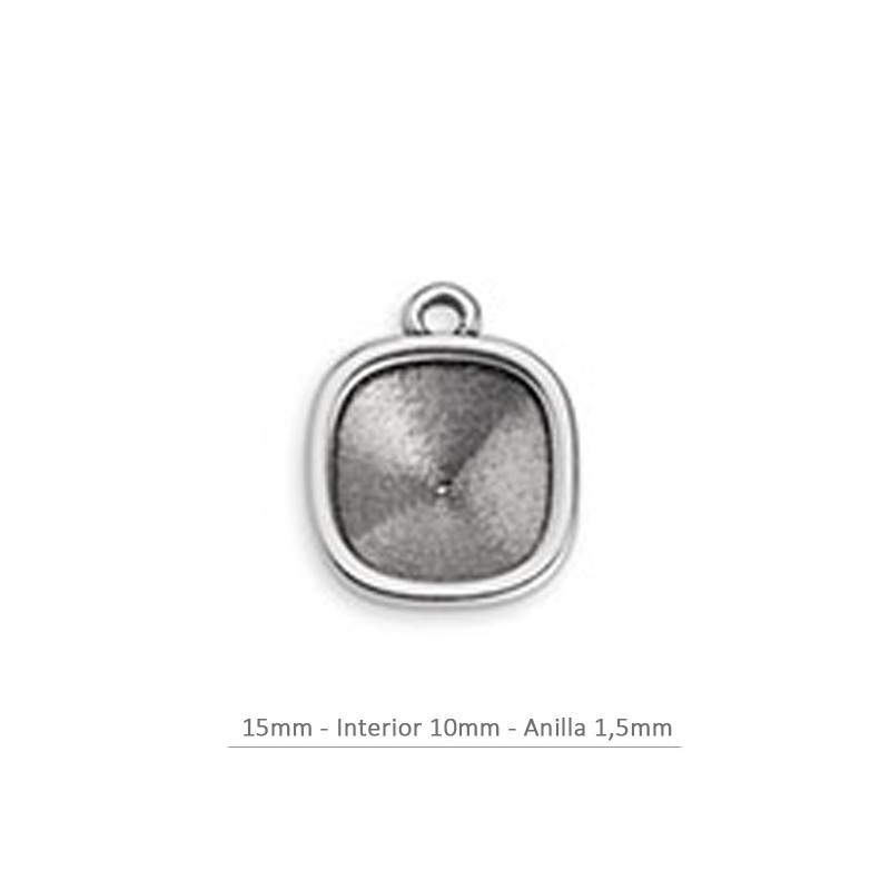 Pendentif pour cristar swarovski 4470. Zamac avec argenté. Le sac contient 1 unité. Il a une taille de 15 mm. et a une perceuse de 1,5 mm. L’intérieur est de 10mm.
