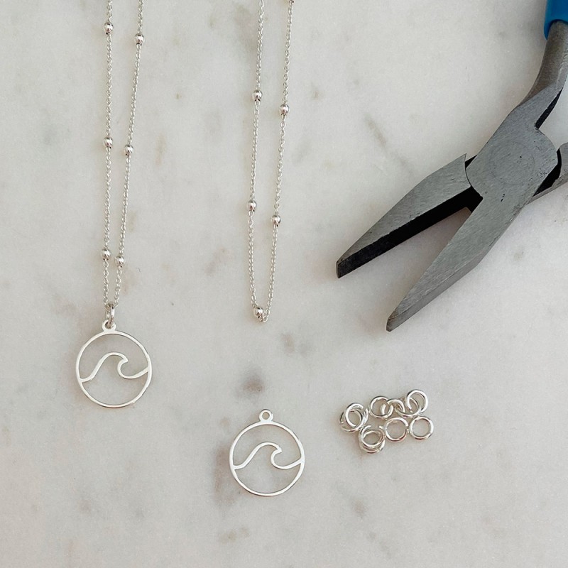 Longueur du pendentif d’onde 13mm de large 15mm et anneau 1.2mm. Argent 925. Le prix est par sac et le sac contient une unité.
