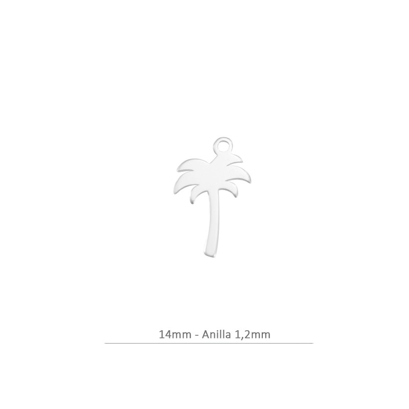 Mini pendentif de paume de 14 mm de long et anneau de 1,2 mm. Argent 925. Le prix est par sac et le sac contient une unité.