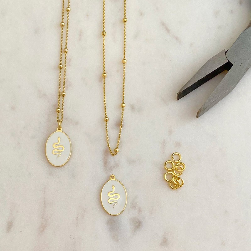 - Colgant ovale blanc avec serpent en argent argent 925 doré 17 long - 10 de large et anneau 1,2 mm - Le prix est par unité.