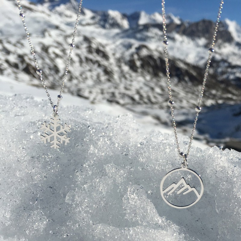 Vente à l’unité. Longueur 45 cm.Intercalaire 14mm montagnes en argent 925