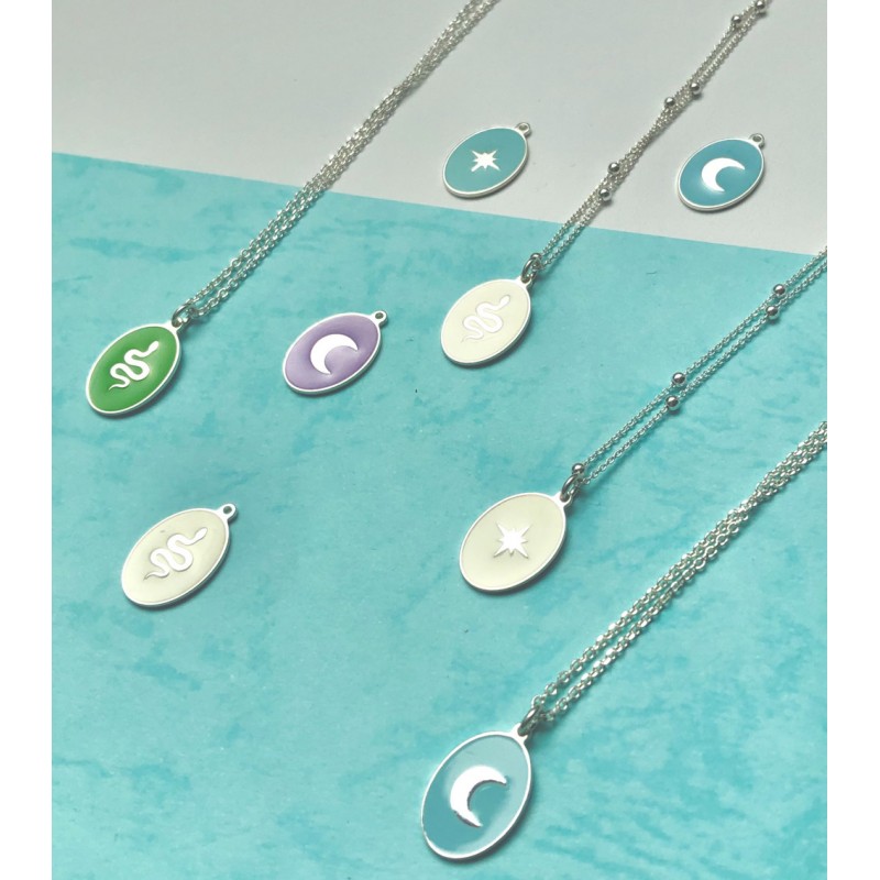- Colgant ovale blanc avec serpent 17 long - 10 de large et anneau 1,2 mm - Le prix est par unité.