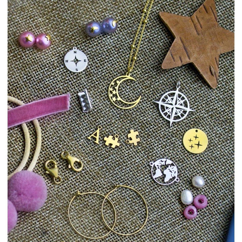 - Pendentif lune avec étoiles en argent 925 avec placage d’or. - La taille est de 15 millimètres et la perceuse supérieure de 1 millimètre. - Le prix est par sac et le sac contient une unité.