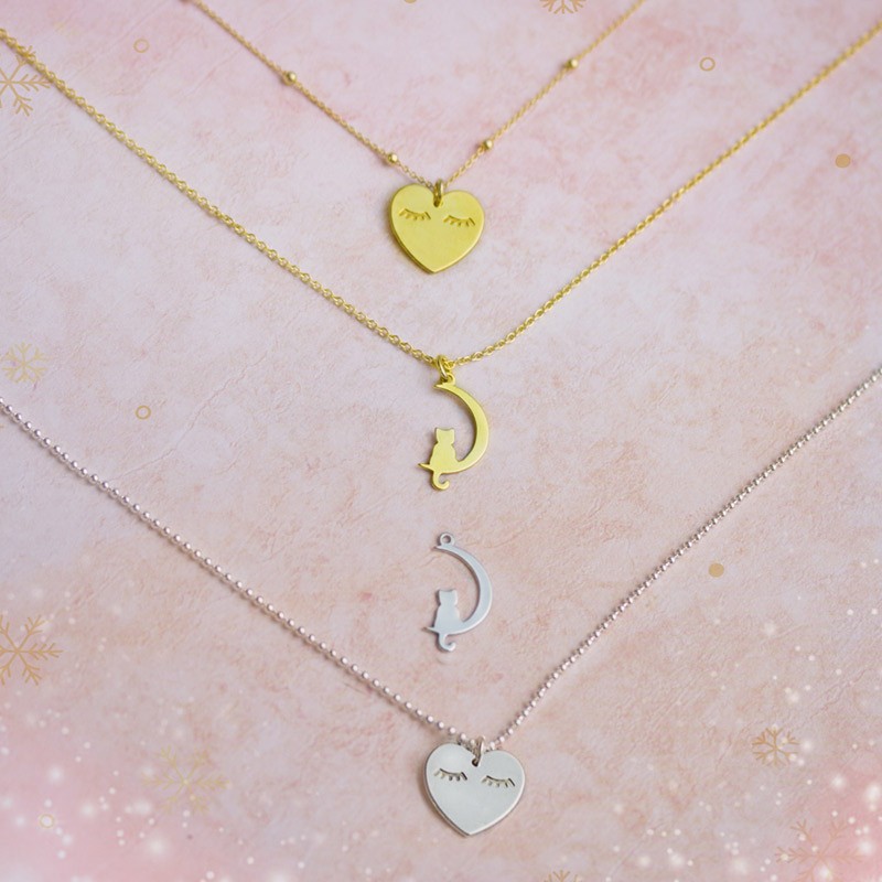 - Pendentif lunes et chat de 13mm en argent avec placage or. - Bague 1mm. - Le prix est par sac et le sac contient une unité.
