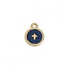 Pendentif croisé émaillé bleu foncé de 10mm en zamac avec doré. La vente se fait par sac et le sac contient une unité.