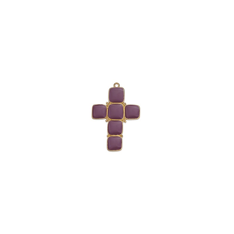 -Pendentif croisé de 40mm avec émail en violet zamac avec doré. -La vente se fait par sac et le sac contient une unité.