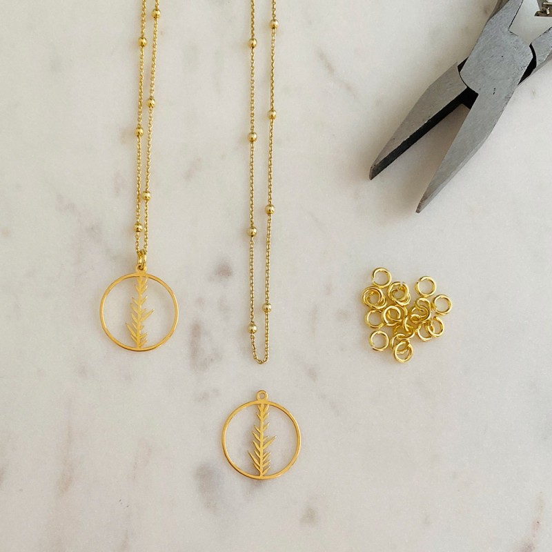 Pendentif en épicéa de 20 mm dans argent 925 doré, anneau de 1,2 mm. Vente par sac, le sac contient 1 unité.