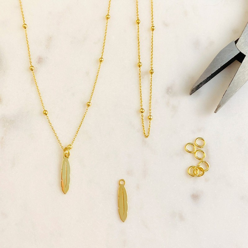Pendentif en forme de plume de 16 mm en argent 925 doré, anneau 1,5 mm. Vente par sac, le sac contient 1 unité.