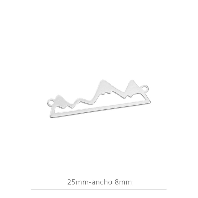 - Pendentif de montagne en argent 925. - La taille est de 25 mm (hauteur) x 8 millimètres (largeur) avec des anneaux de 1,2 mm. - Le prix est par sac et le sac contient une unité.