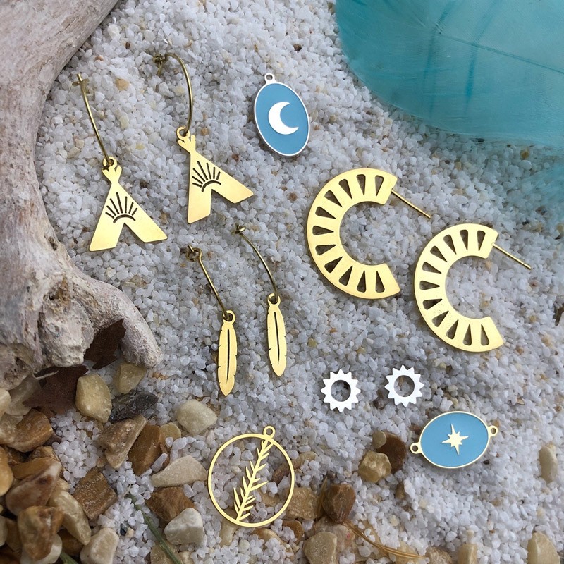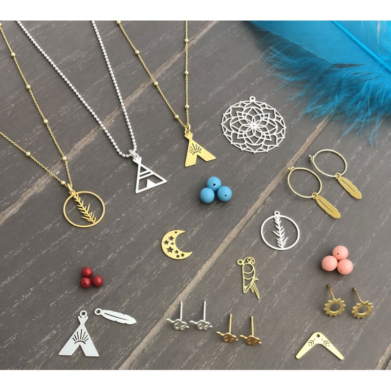 Sac de 2 pcs. Taille 25mm - anneau 1.5mm. Diamètre du fil 0.7mmPendentif tipi indien 17mm argent 925 doré.