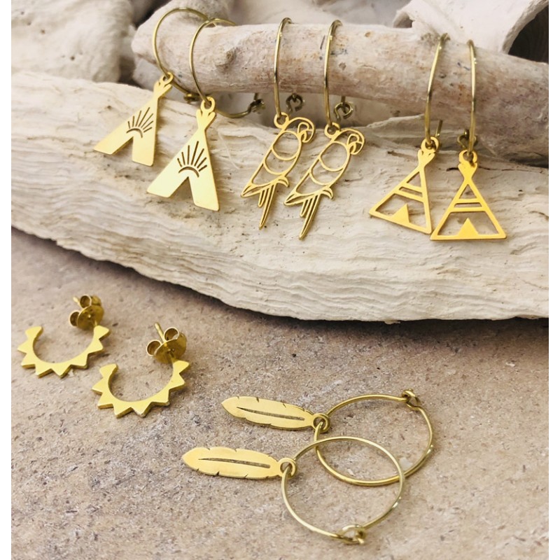 Sac de 2 pcs. Taille 25mm - anneau 1.5mm. Diamètre du fil 0.7mmPendentif tipi indien 17mm argent 925 doré.