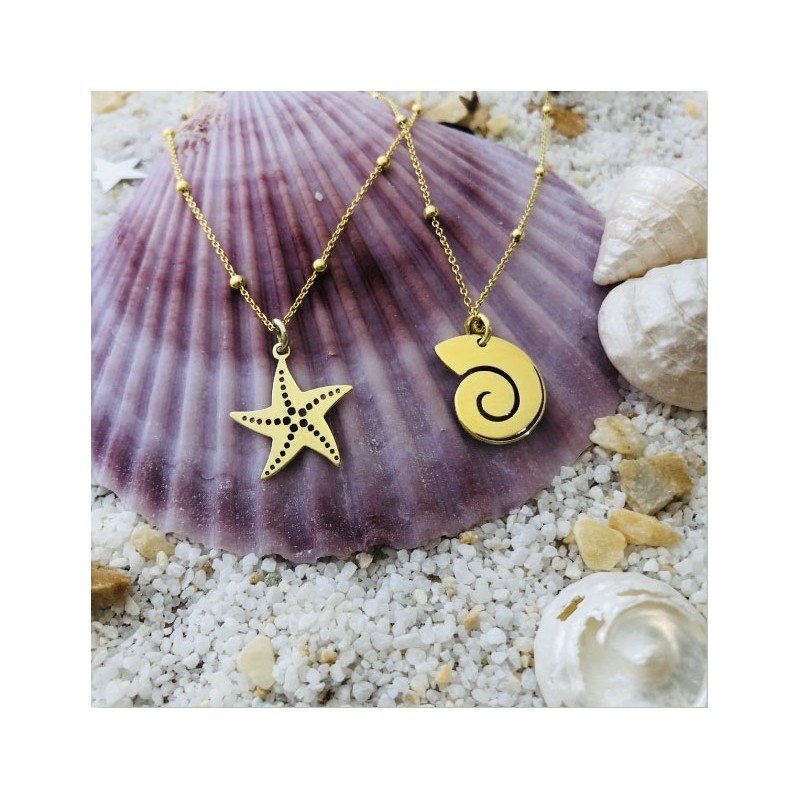 Pendentif en conque en argent 925 baigné d’or 18 carats. Fabriqué en Espagne.