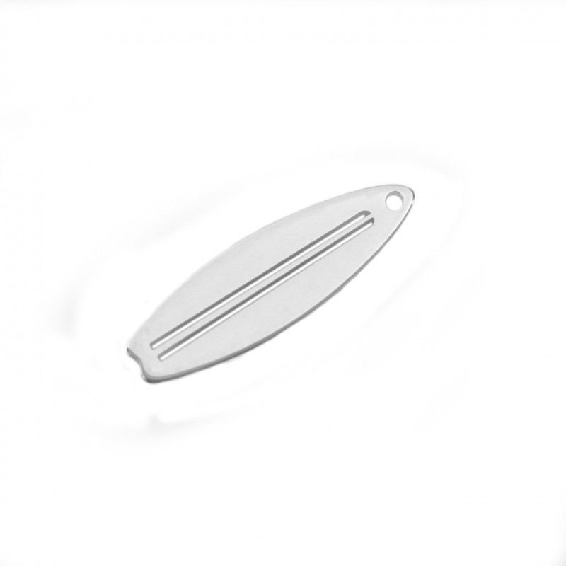 Pendentif planche de surf, 17mm de long, trou de 1mm. Argent 925. Le prix est par sac et le sac contient une unité.