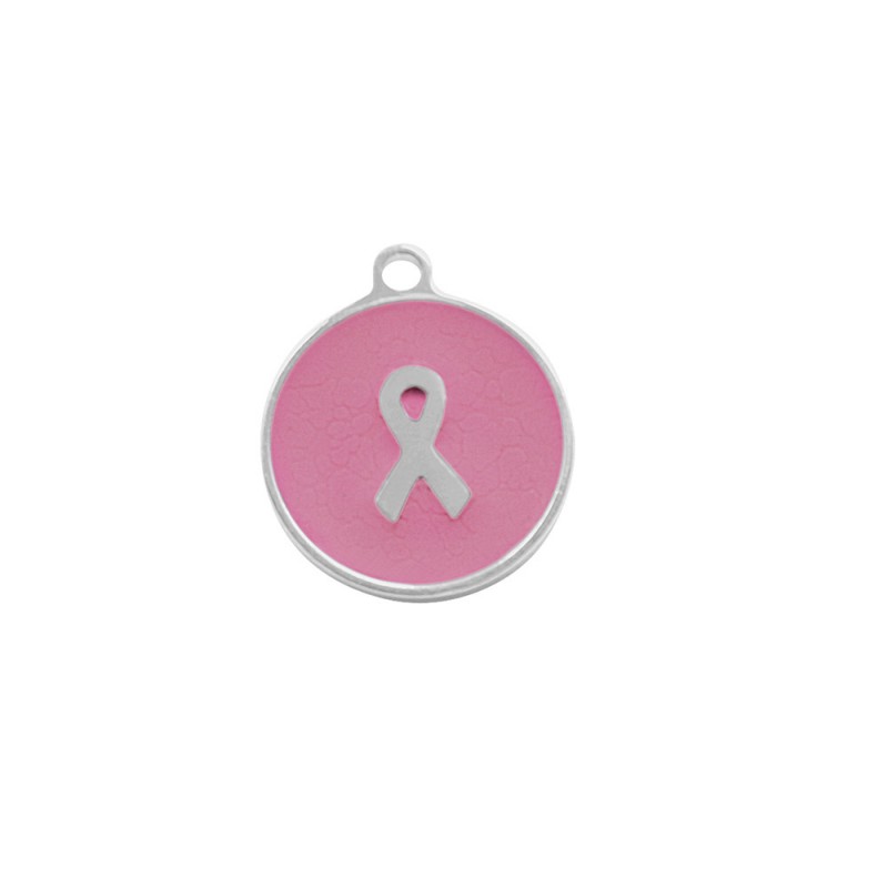 Pendentif rond en arc anticancéreux en argent 925, émaillé en rose. Fabriqué en Espagne.