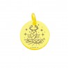 Pendentif d’horoscope rond du Scorpion en argent 925, baigné d’or 18 carats et gravé en blanc avec le symbole du Scorpion. Fabriqué en Espagne.