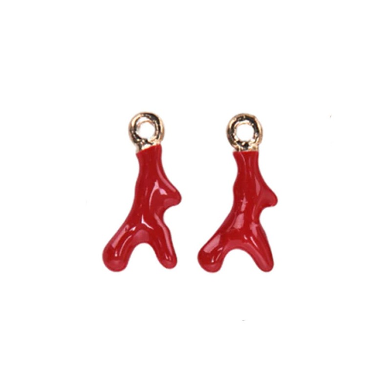 Pendentif en corail émaillé en rouge zamac en bain d’or.