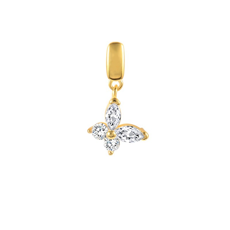 Pendentif papilon avec zirconites 15mm - trou 1.8mm argent 925 doré