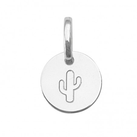 Pendentif rond cactus en argent 925, fabriqué en Espagne. Il est livré avec un anneau soudé également argent 925. disponible.