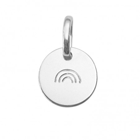 Pendentif rond arc en ciel en argent 925, fabriqué en Espagne. Il est livré avec un anneau soudé également argent 925. disponible.