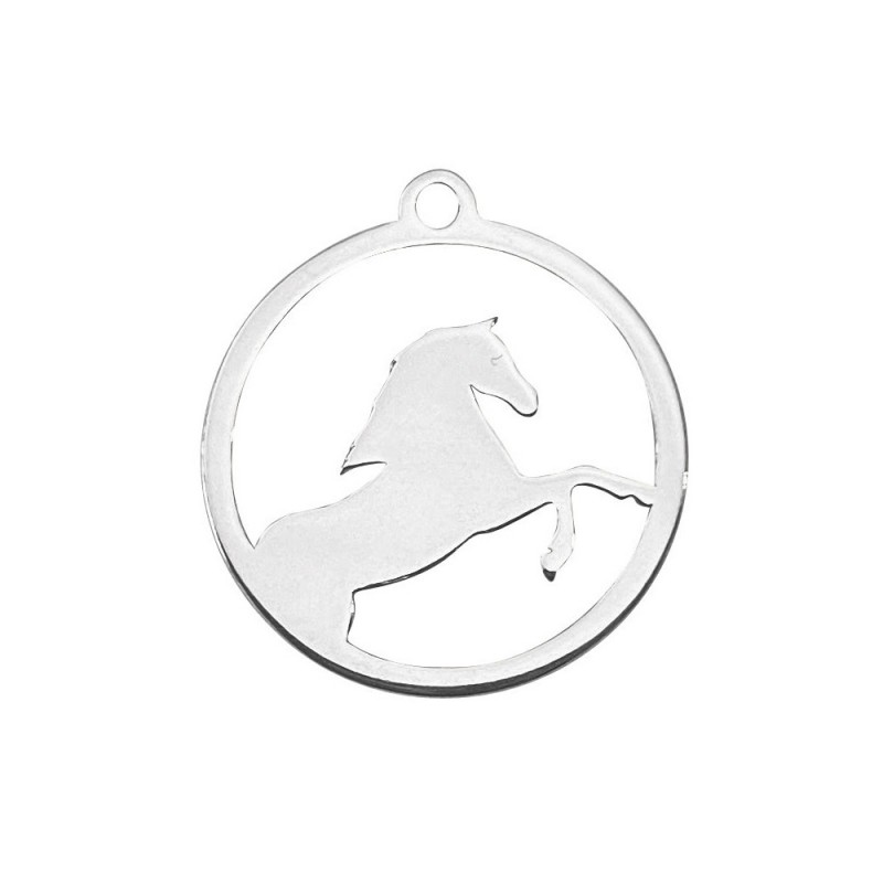 Pendentif insigne cheval avec poignée de 15 mm de diamètre en argent sterling 925. Fabriqué en Espagne.