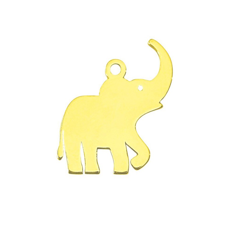 Pendentif l'éléphant 16 mm de diamètre en argent sterling 925 doré 18k. Fabriqué en Espagne.