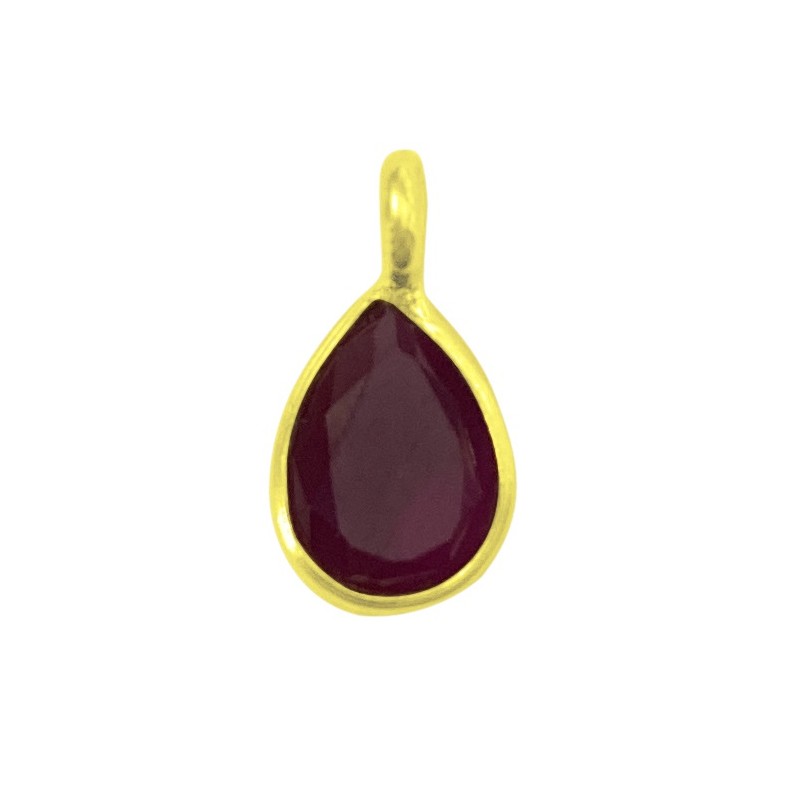 Pendentif goutte quartz grenat biseauté de 8 mm en argent doré