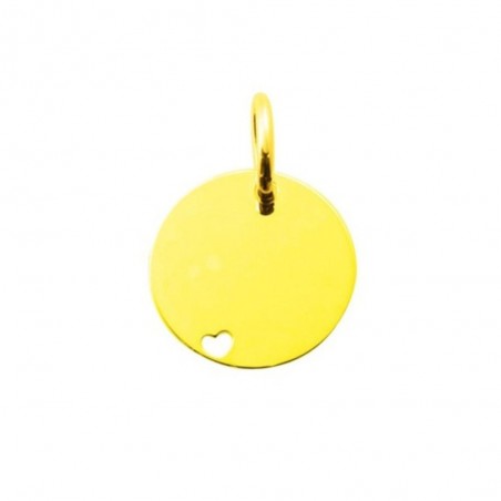 Pendentif rond à graver avec coeur sur argent 925 baigné d’or 18 carats, fabriqué en Espagne. Il est livré avec un anneau soudé. C’est la petit taille des plaques de gravure qui est disponible.