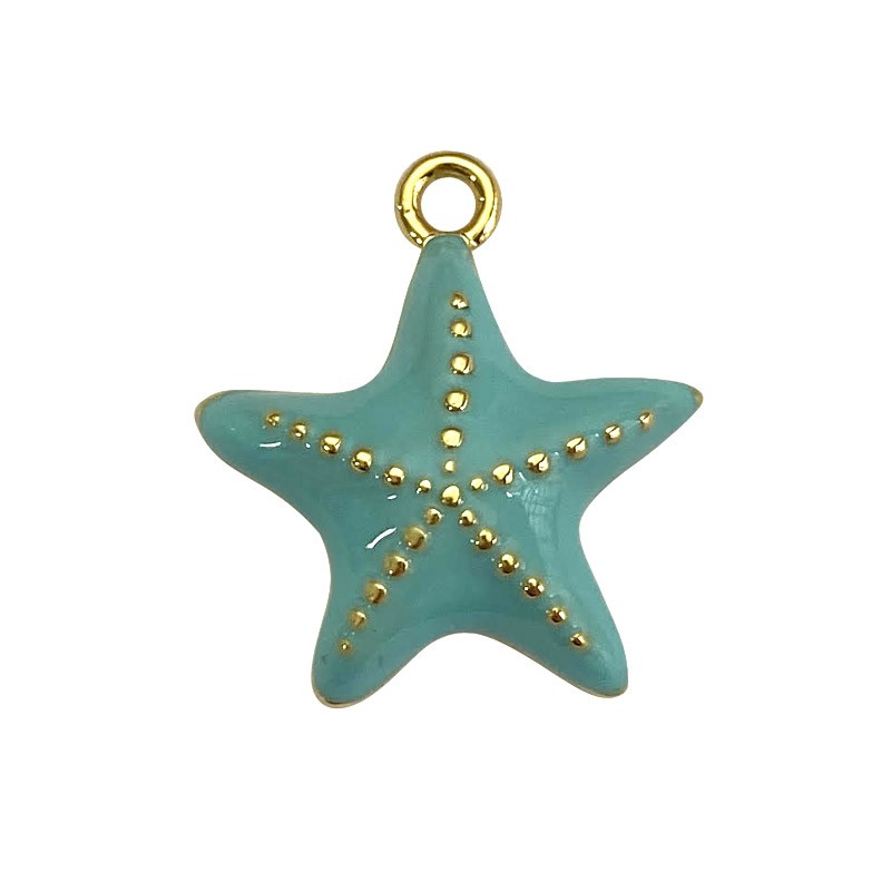 Pendentif étoile de mer émaillé couleur turquoise en zamak plaqué or.