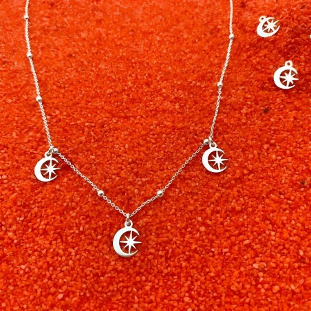 Mini pendentif lune et étoile avec poignée en argent sterling 925. Fabriqué en Espagne.