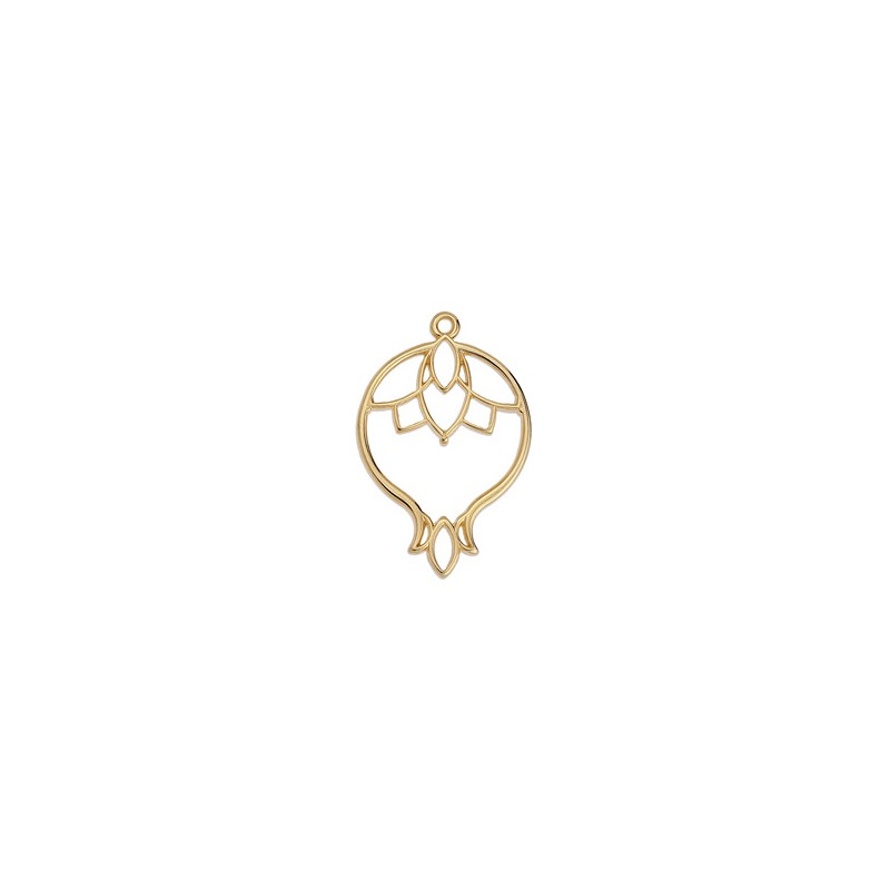 Pendentif en forme de grenade et contour supérieur en forme de fleur de lotus en zamak bain d'or 24k
