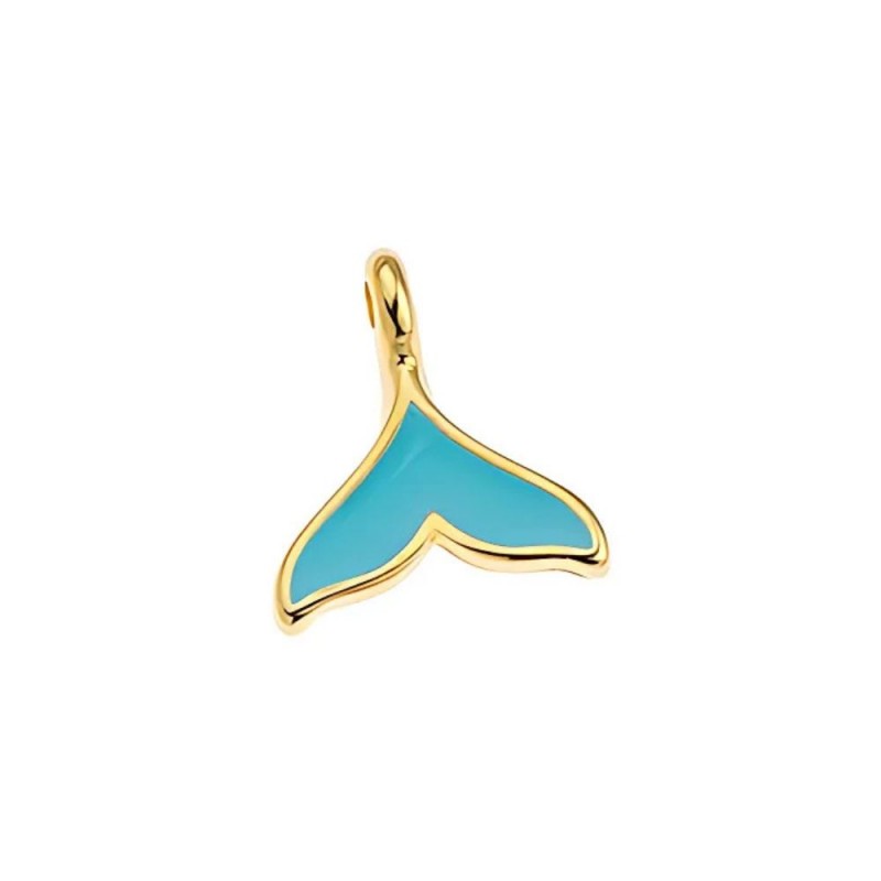 Pendentif queue de baleine en émail bleu turquoise. Zamak avec placage or 24 carats.
