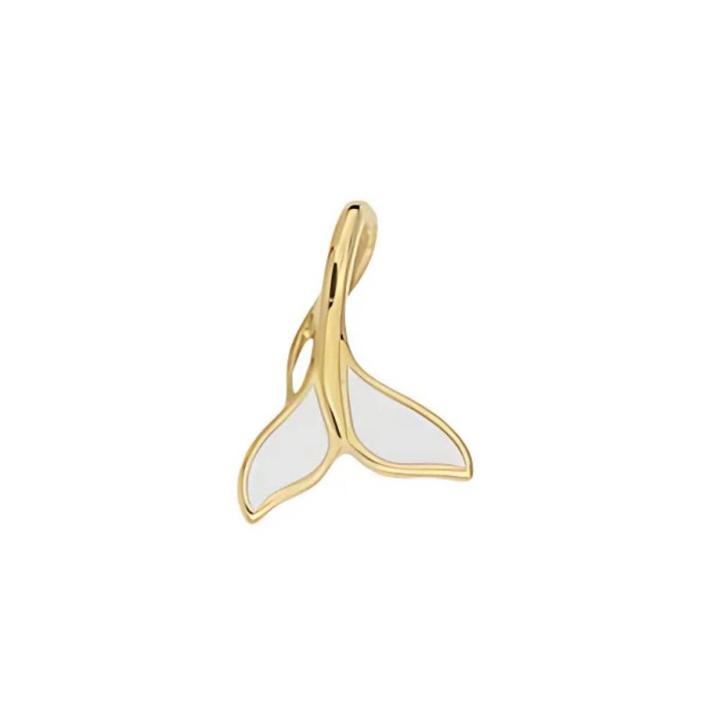 Pendentif queue de sirène en émail blanc 14,7 mm. Plaqué or.