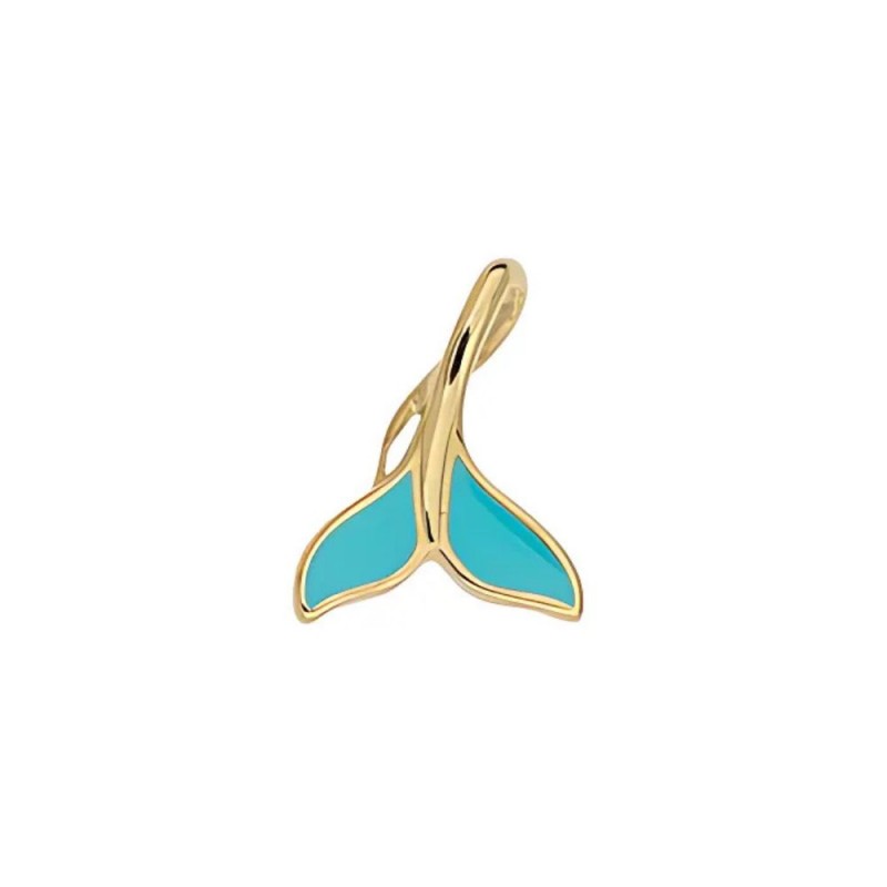 Pendentif queue de sirène en émail bleu turquoise. Zamak avec placage or.