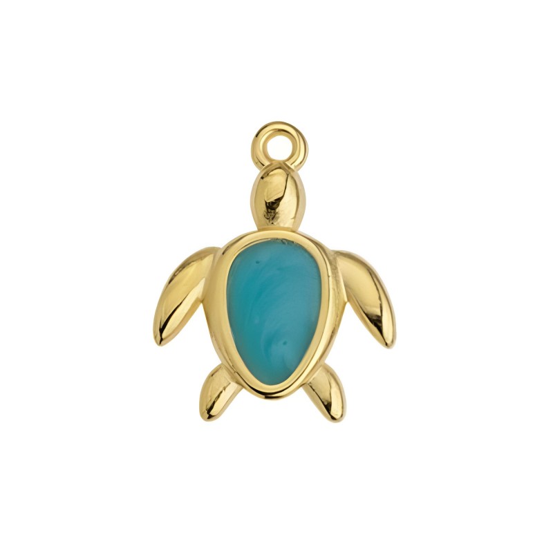 Pendentif tortue émail perle turquoise. Zamak avec placage or 24 carats.