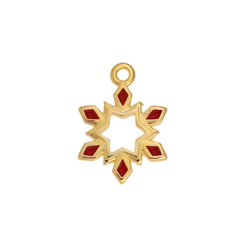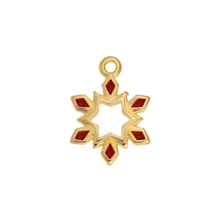 Pendentif flocon de neige avec émail rouge de 17,4 mm. Zamak plaqué or 24 carats.