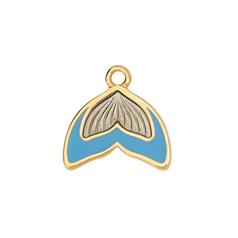 Pendentif queue de sirène émaillée bleue. Zamak avec finition dorée.