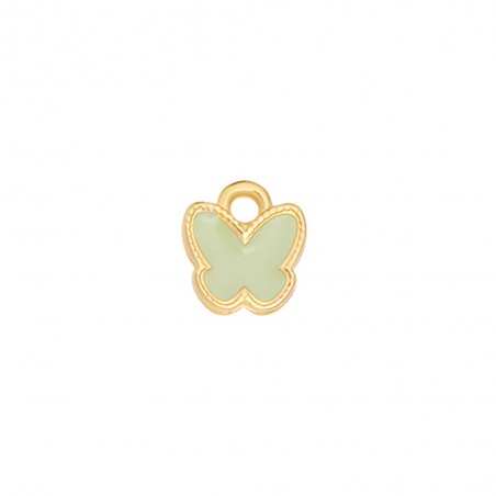 Pendentif papillon en émail vert. Zamak avec bain d’or.