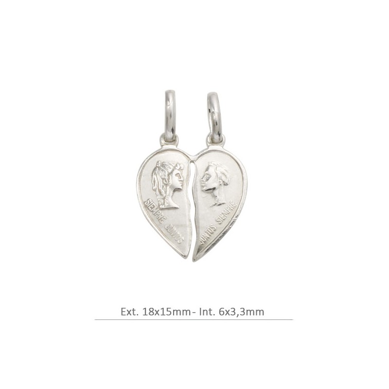 Pendentif coeur couple en argent sterling 925. Fabriqué en Espagne.