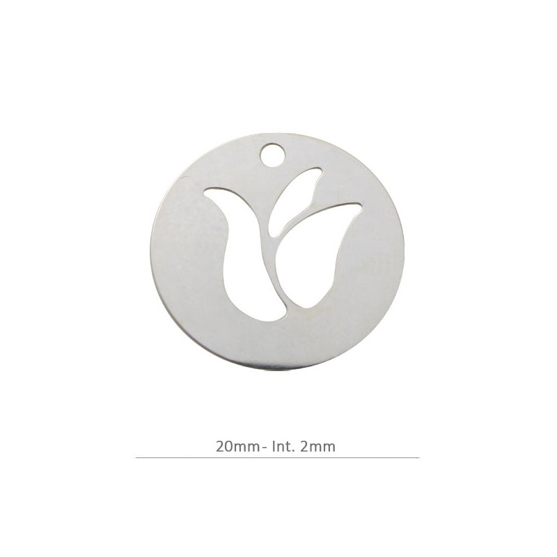 Pendentif tulipe de forage de 2 mm. Argent 925. Le sac contient une unité et la taille est de 20 mm.