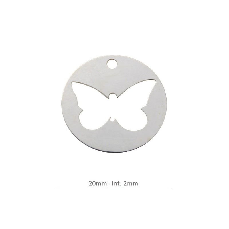 Pendentif papillon perceuse 2mm. Argent 925. Le sac contient une unité et la taille est de 20 mm.