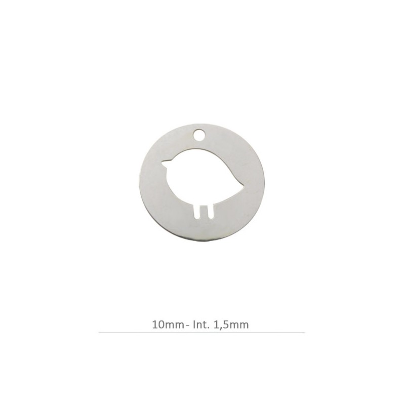 Sac de 10 pcs. Diamètre 4 mm. Filetage 0,7 mm.Pendentif Rond Charm P. 8 mm avec perceuse 1,2 mm