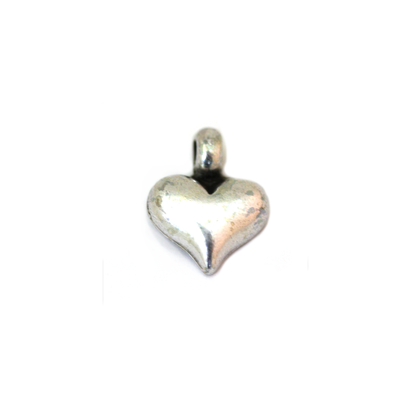 Pendentif coeur en zamac avec argenté. Le sac contient 1 unité. La taille est de 18 x 14,5 mm. et la perceuse est de 3,5 mm.