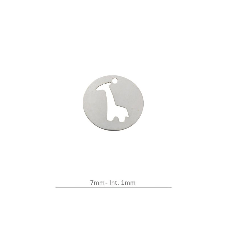 Pendentif de charme rond girafe. 7 mm avec perceuse de 0,9 mm