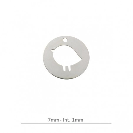 Pendentif charme poussin rond. 7 mm avec perceuse de 0,9 mm