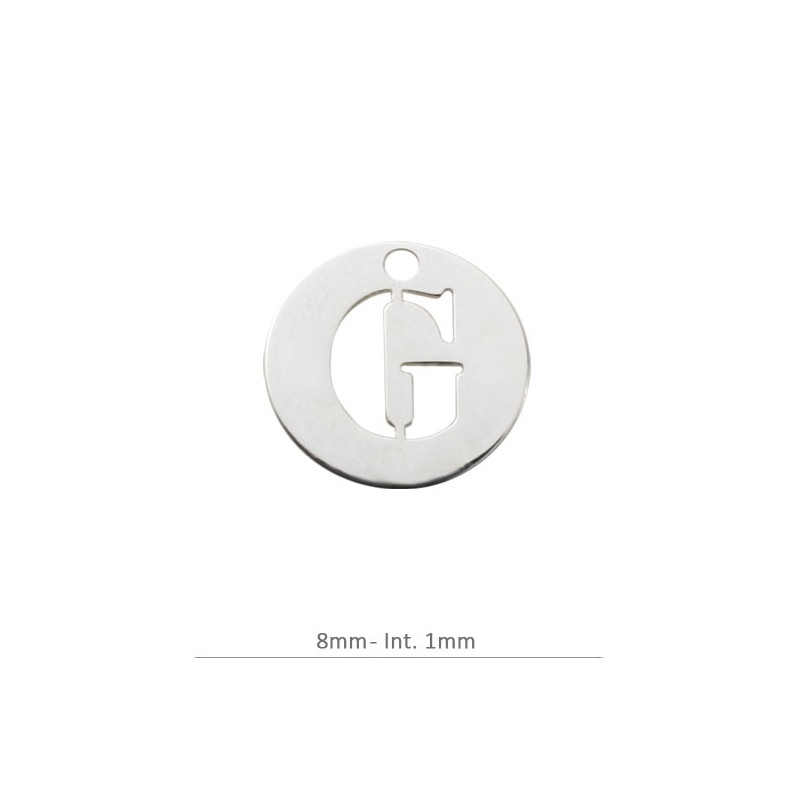 Pendentif rond Charm lettre G. 8 mm avec perceuses 1,2 mm