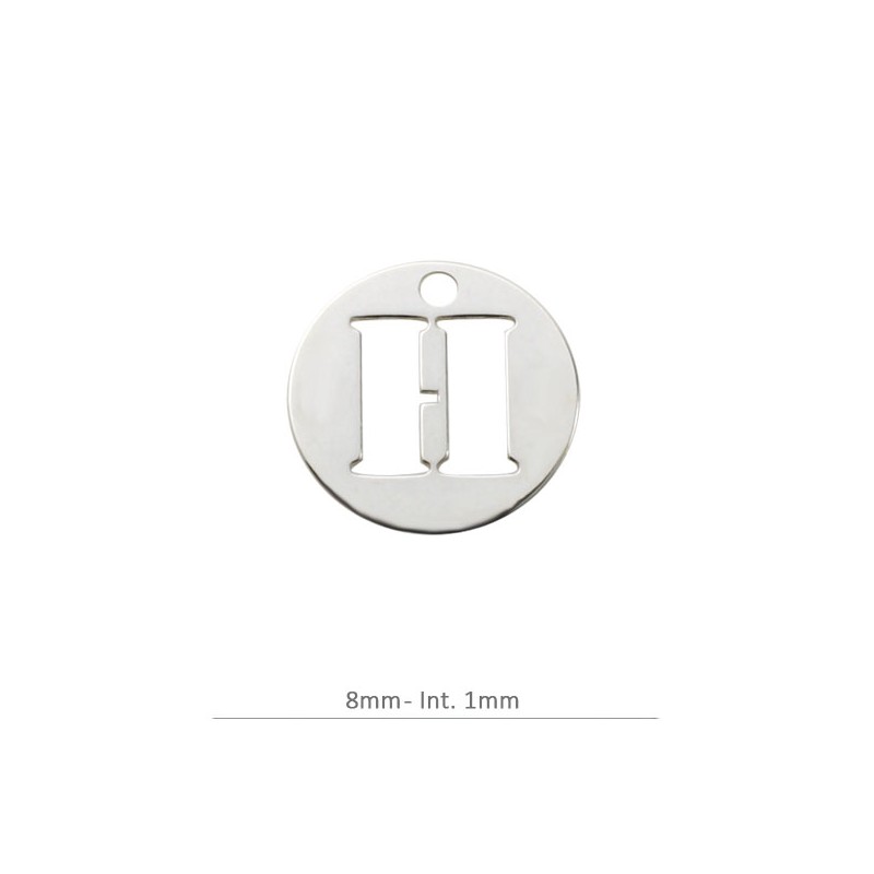 Pendentif Rond Charm lettre H. 8 mm avec perceuse 1,2 mm