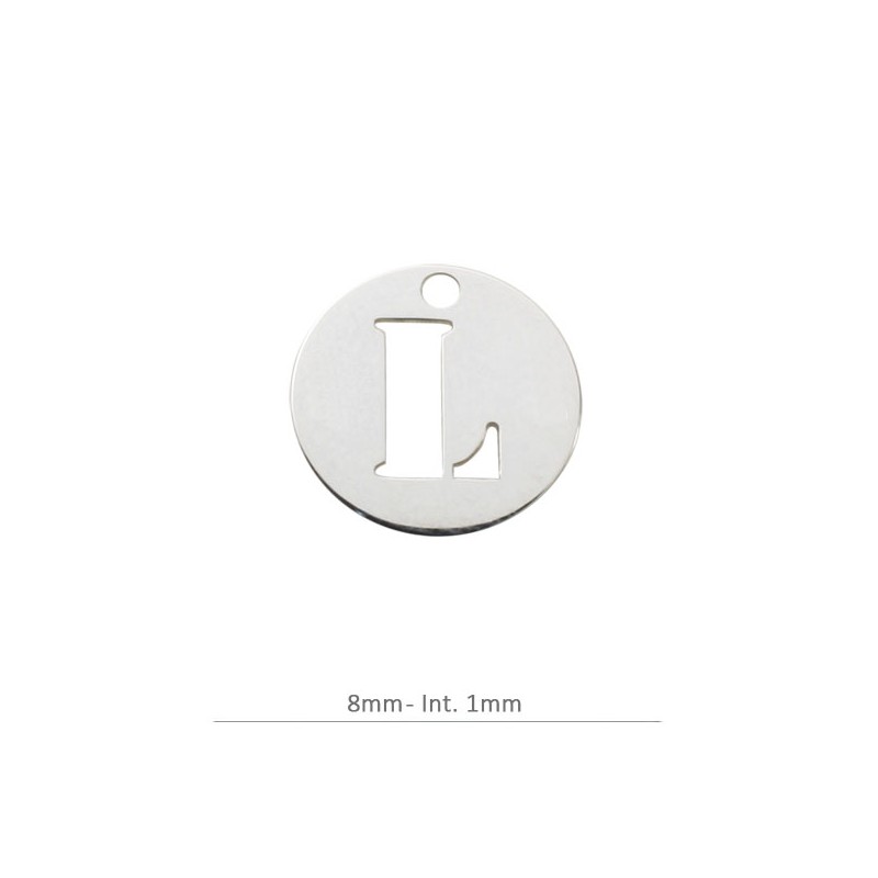 Pendentif Rond Charm lettre L. 8 mm avec perceuse 1,2 mm