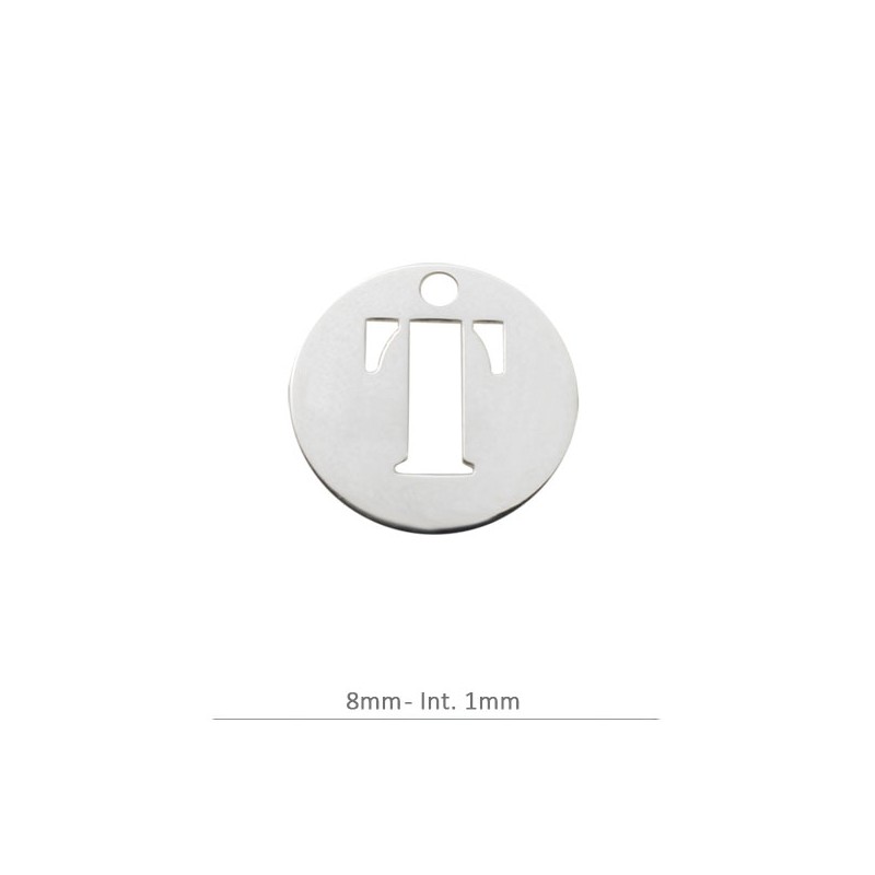 Pendentif charm lettre ronde T. 8 mm avec perceuse 1,2 mm